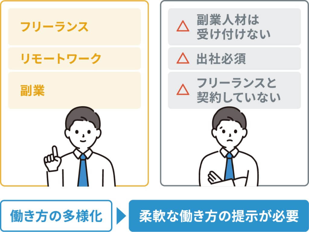 リモートワークの普及により、地方在住のエンジニアが都市部の企業で働くことも容易になりました。また、フリーランスや副業を選ぶエンジニアも増加傾向にあり、企業は従来の雇用形態に捉われない柔軟な働き方を提示することが求められています。