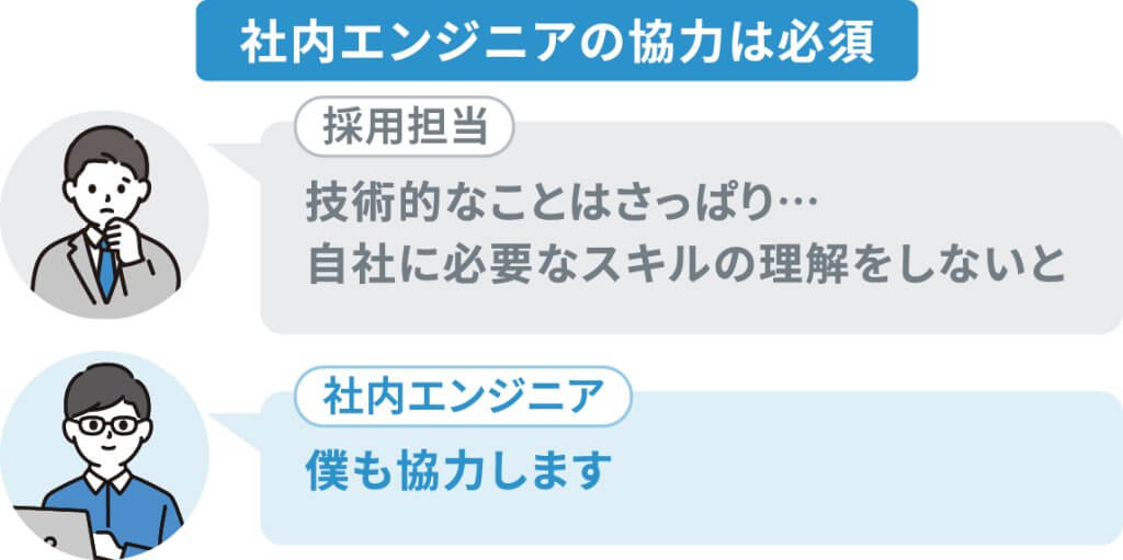 自社に必要な人材を明確化することも重要です。どのようなスキルを持つエンジニアが、どのような役割を担うのかを具体的に定義することで、採用基準が明確になり、ミスマッチを防ぐことができます。