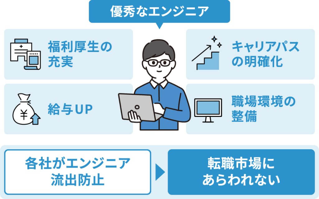 各社がエンジニア流出防止の対策をしている