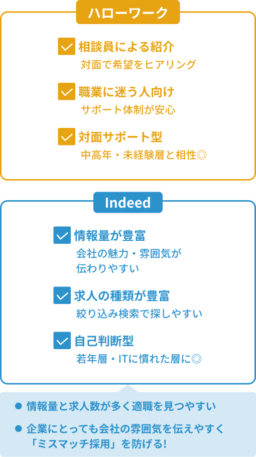 インターネットに慣れている若年層にとっては、求人数や情報量が豊富なIndeedの方が、適職を見つけやすい可能性があります。企業側にとっても、会社の魅力や職場の雰囲気をしっかり伝えられるIndeedは、ミスマッチを防ぐための有効な手段といえるでしょう。