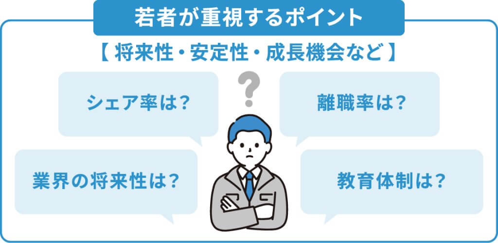 この中で、特に意識したいのが「若者が重視するポイント」をしっかり反映させることです。たとえば、将来性・安定性・成長機会などの観点は、志望動機や定着率に大きく影響します。